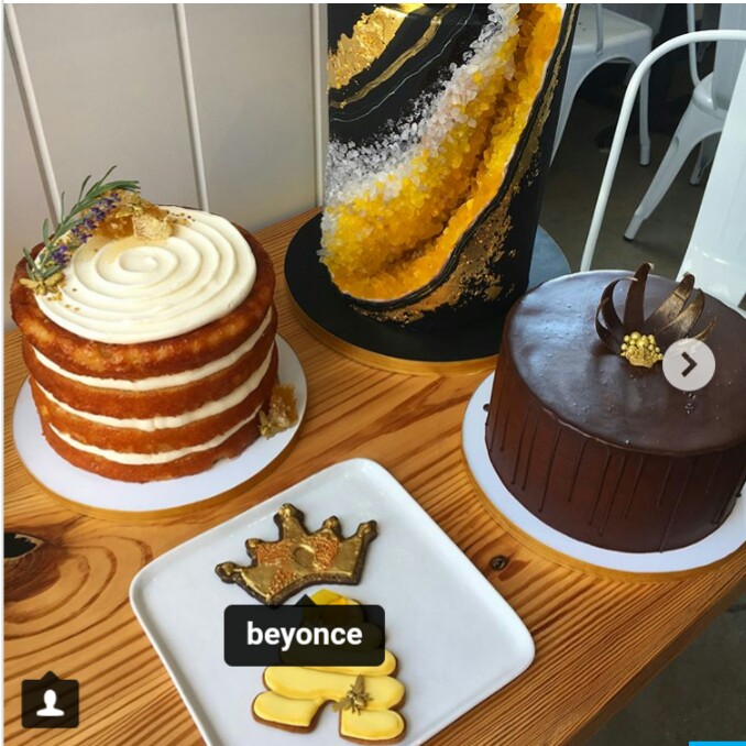 They baked and delivered a cake and other treats as asked to the location of Made in America. On request, there was a geode themed cake, which had a volcano-like honey and lavender cake featuring edible sugar crystals and a golden grown and was joined by cookies shaped like beehives.