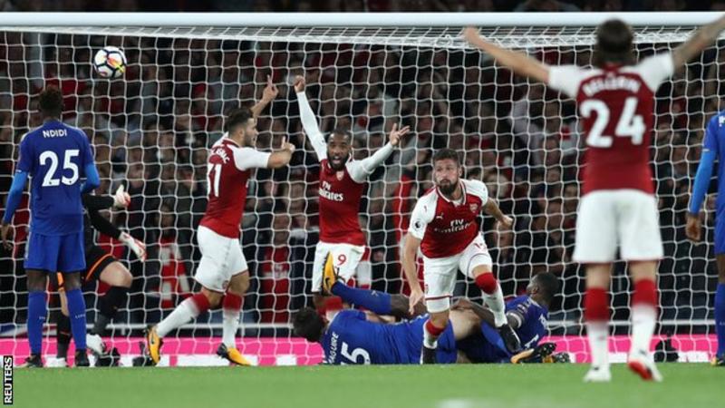 Substitute Olivier Giroud headed in a dramatic late winner as Arsenal fought back to beat Leicester City in a thrilling start to the 2017-18 Premier League season.