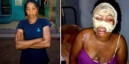A housewife and mother of two, Mrs. Joy Sunday, 37, has been arrested by men of the Ogun State Police Command for pouring hot water on the face of another woman, Justina Ameh, after accusing her of sleeping with her husband.