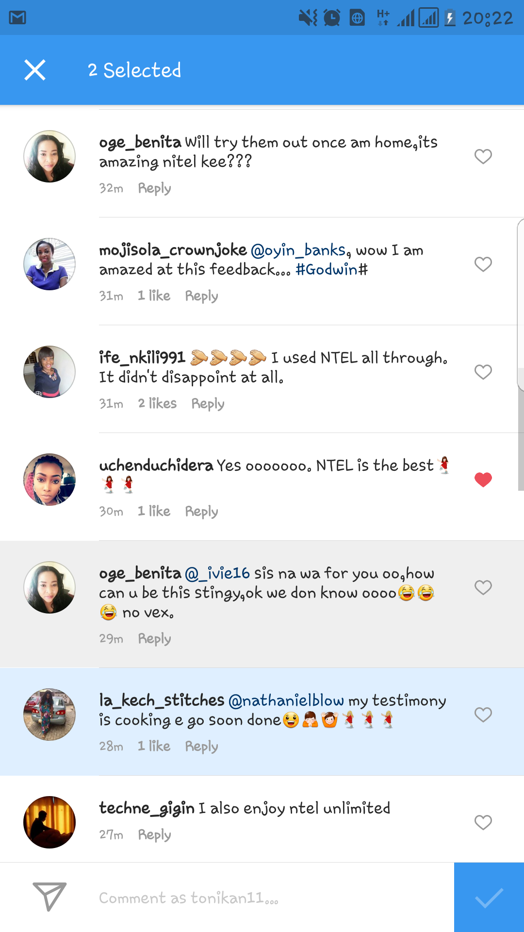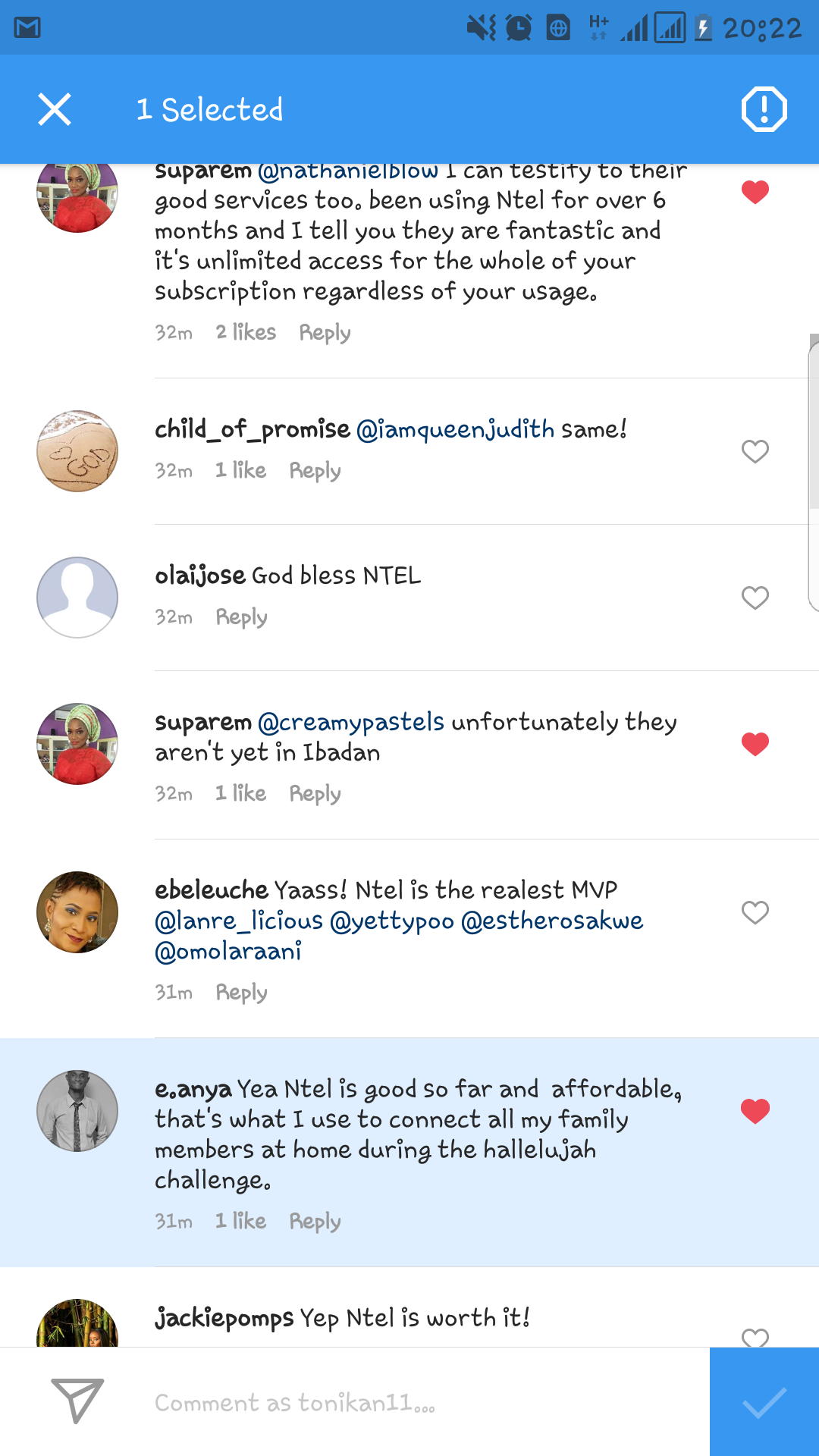 Nathaniel Bassey’s post had received over 3,500 by 9pm and over 400 comments with many attesting to ntel’s speed while others made enquiries.